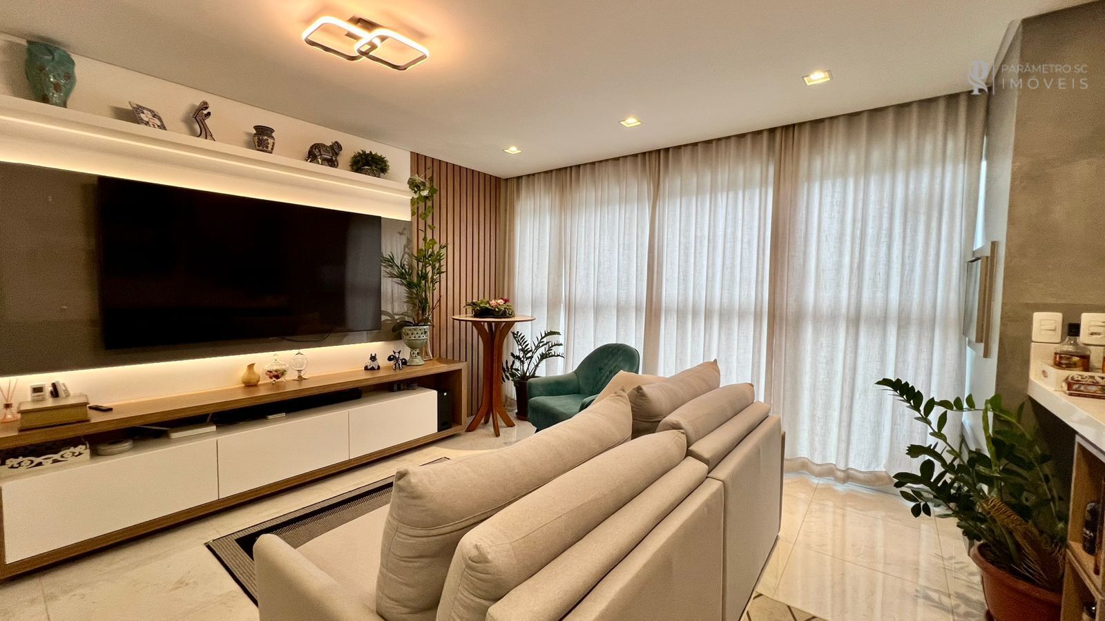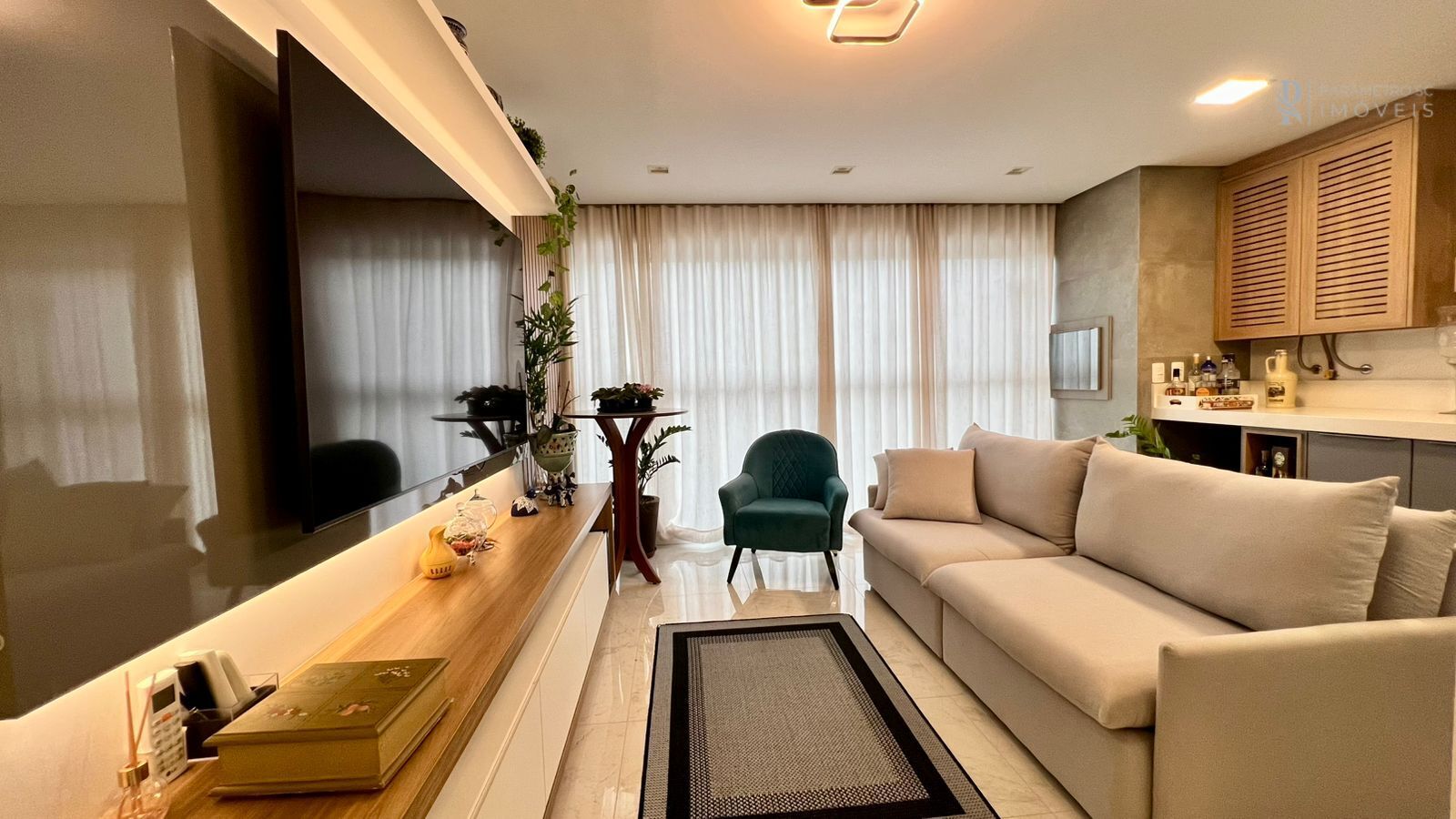 - Living amplo e integrado, com sala de estar, jantar e cozinha