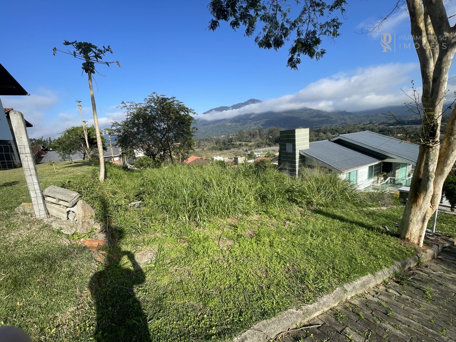 Terreno final de rua com 390 m² em rua calçada, com fácil acesso ao Centro e à BR-470. Vista privilegiada e perfeito para construir o seu futuro lar!